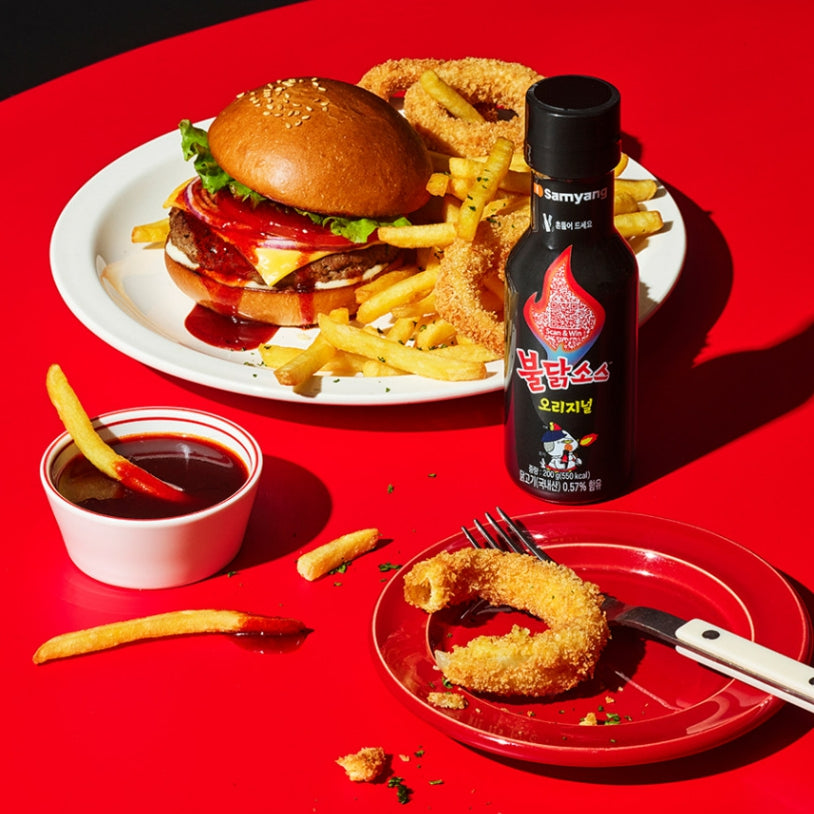The standard version of Samyang’s spicy chicken sauce, known for its bold heat and savory flavor combination.
