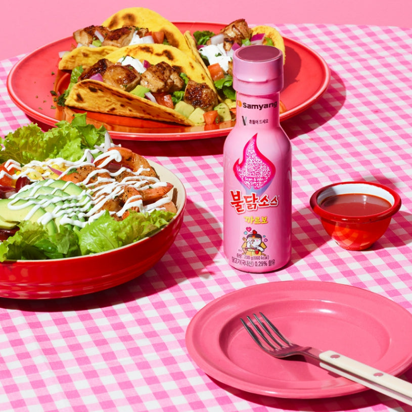 A blend of spicy buldak sauce and mayonnaise base offering a milder and creamier taste.