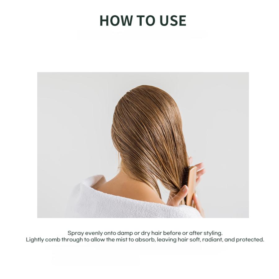 The fine mist evenly coats each strand, leaving hair silky and radiant.